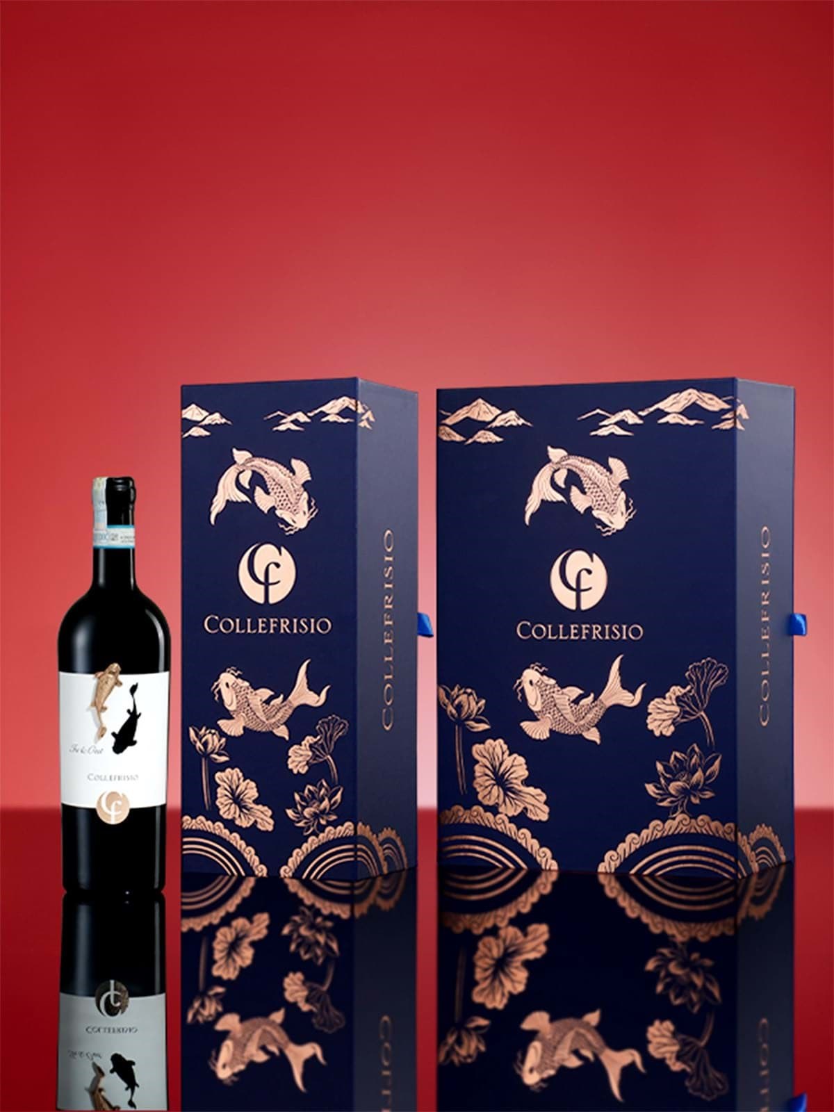 CF Collefrisio Cá chép Vàng - dòng vang đỏ được lấy cảm hứng từ văn hóa và truyền thống của người Châu Á. Với hương vị tinh tế và đậm đà cùng thiết kế hộp sang trọng lấy cảm hứng từ hình tượng cá Chép - hình ảnh biểu tượng cho sự tích cực, sung túc và may mắn như một thông điệp mà nhà Collefrisio muốn gửi gắm qua loại vang này.