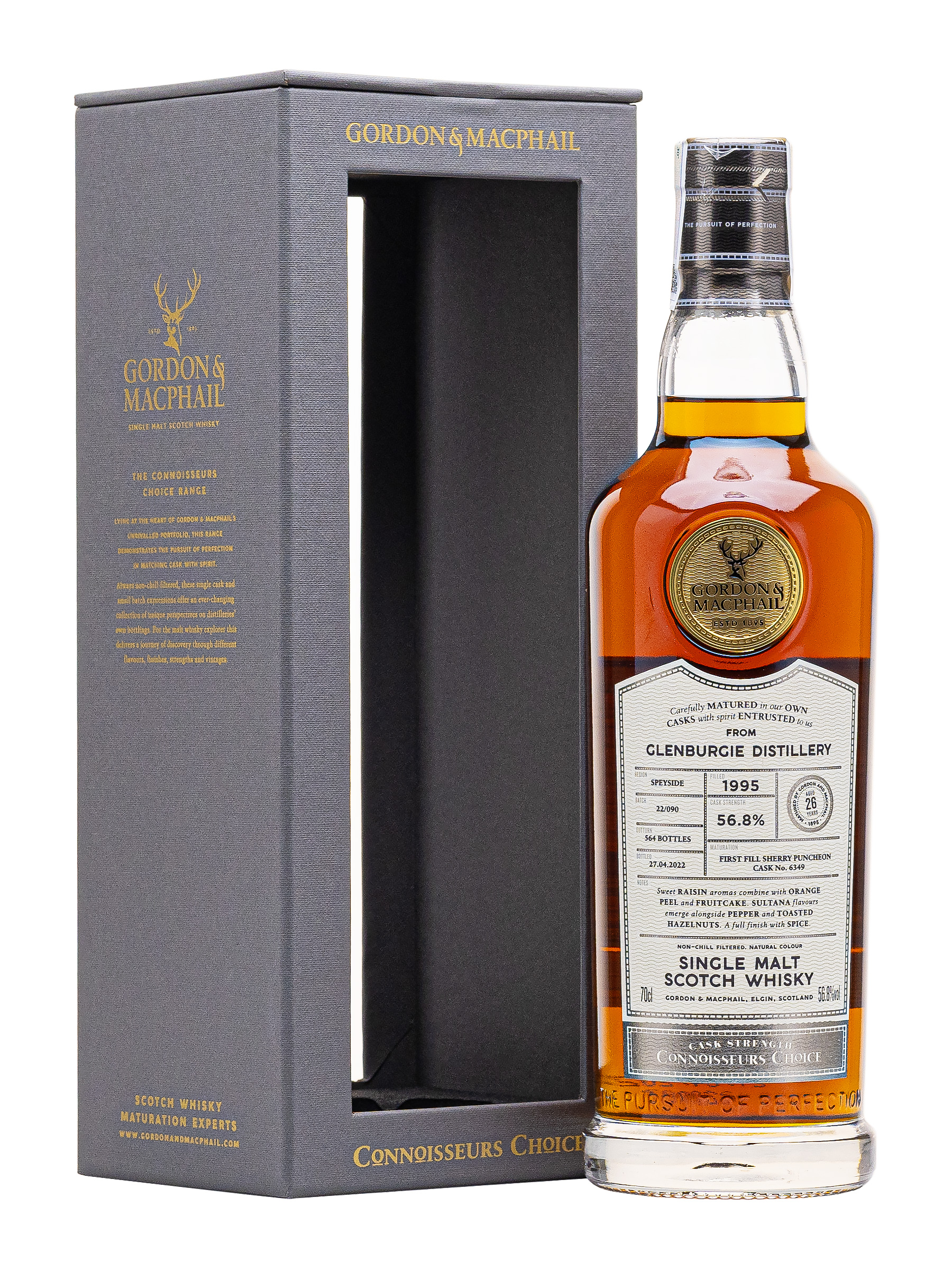 Rượu Glenburgie 1995 - 26 năm, đóng chai bởi nhà đóng chai độc lập Gordon & MacPhail trong seri Connoisseurs Choice - Cask Strength, Speyside, Scotland. Glenburgie 1995 được chưng cất 1995 và đóng chai 27/04/2022 - 26 năm. Cask no. 6349 đóng 564 chai.