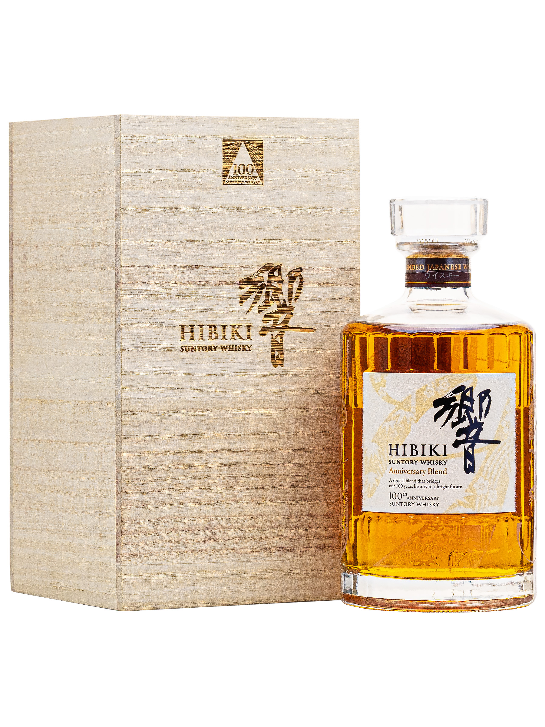 Rượu Hibiki Anniversary Blend 100th Anniversary - phiên bản phát hành giới hạn/Limited Edition cho các nhà hàng, bar trong nội địa Nhật. Rượu được blend từ các thùng rượu được ủ từ 17 - 30 năm.