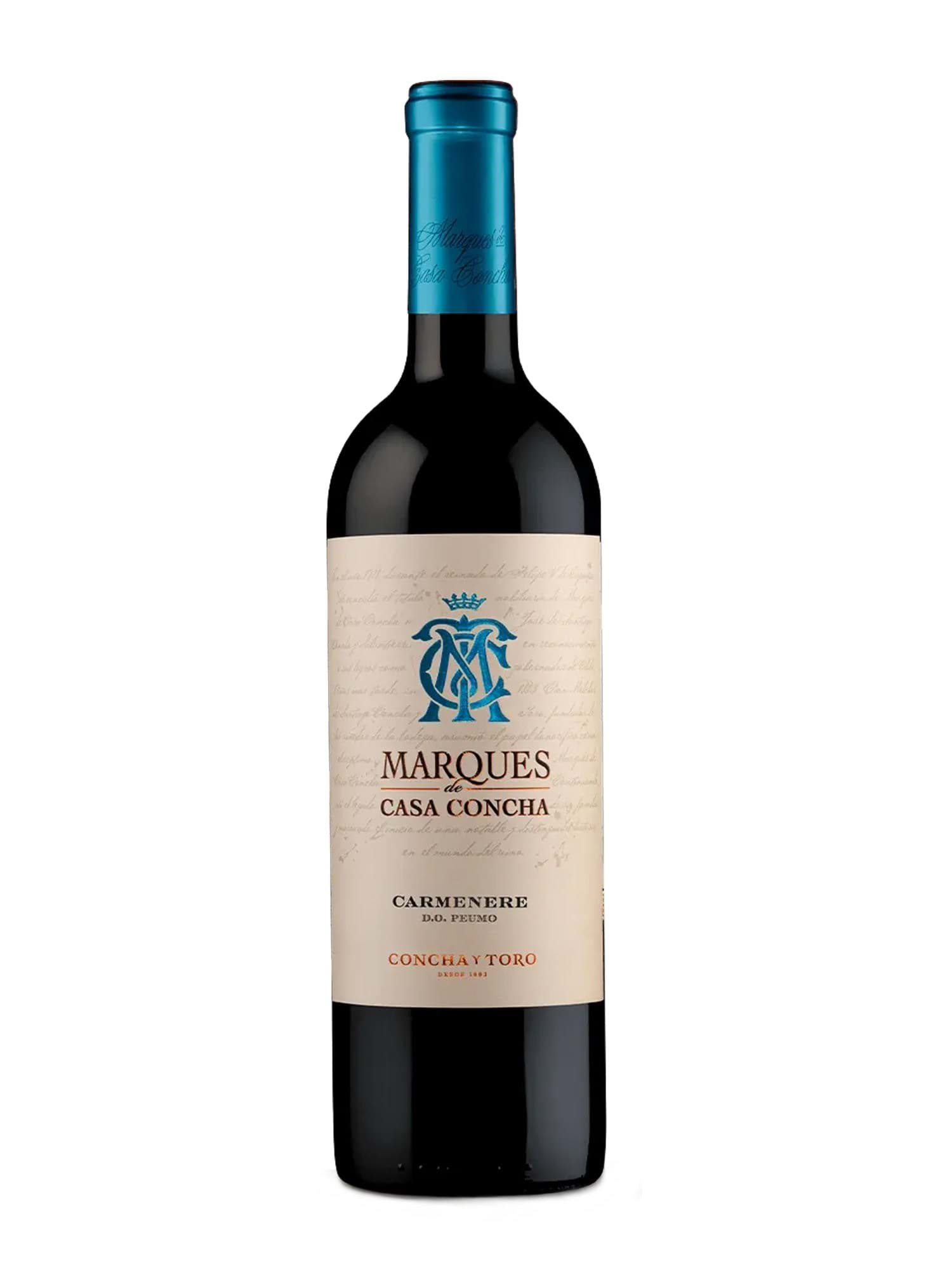 Vang Chile Concha Y Toro Marques de Casa Concha Carmenere màu đỏ sẫm đậm, với đặc điểm cổ điển của Carmenere từ Peumo, với hương nồng nàn của mận chín, quả lý chua đen và sô cô la đen, cùng với cấu trúc tannic chắc chắn và tính axit rõ rệt.