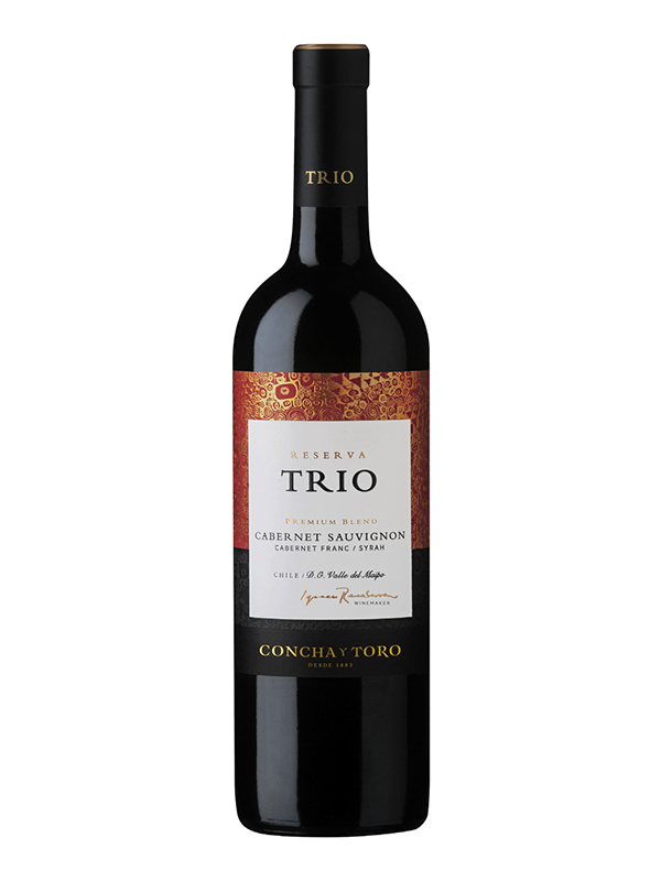 Rượu vang đỏ Chile Concha Y Toro Trio Reserva Cabernet Sauvignon-Shiraz-Cabernet Franc, Maipo Valley. Với các giống nho: 88% CABERNET SAUVIGNON, 7% CABERNET FRANC, 5% SYRAH.