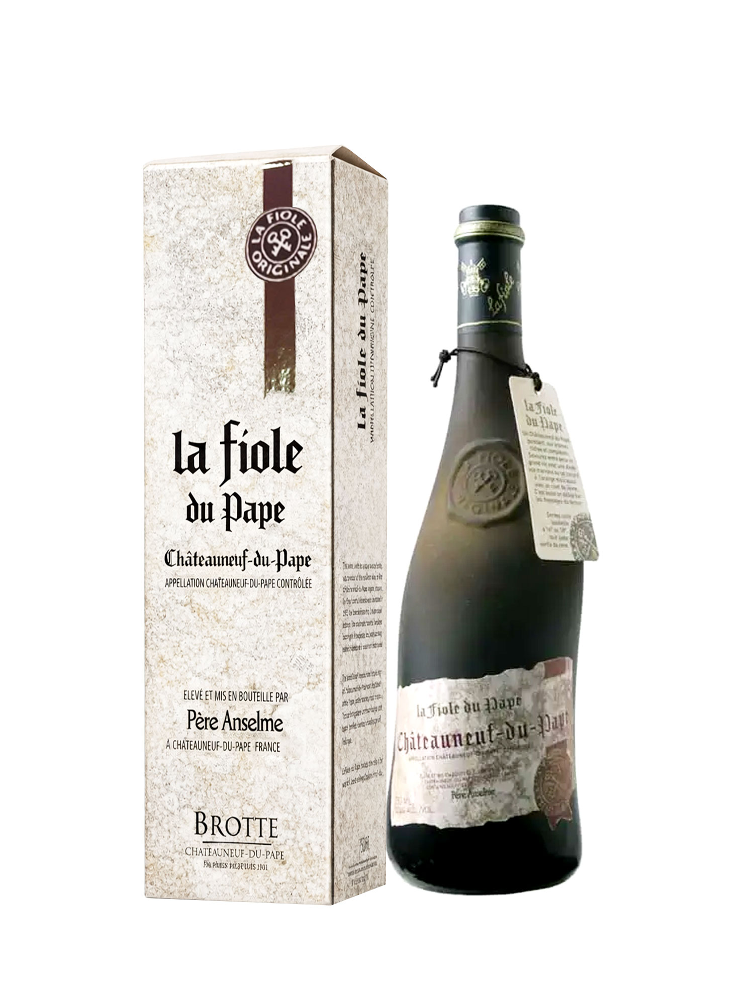 Rượu vang Pháp La Fiole Du Pape - Chateauneuf Du Pape (rượu vang bụi, vang vẹo) dòng vang đỏ Pháp được phối trộn từ 13 giống nho (Grenache, Syrah, Mourvèdre, Cinsault,...), ủ các năm khác nhau nên trên chai không để vintage.  Năm 2014 được Wine Spectator đánh giá 88/100 điểm